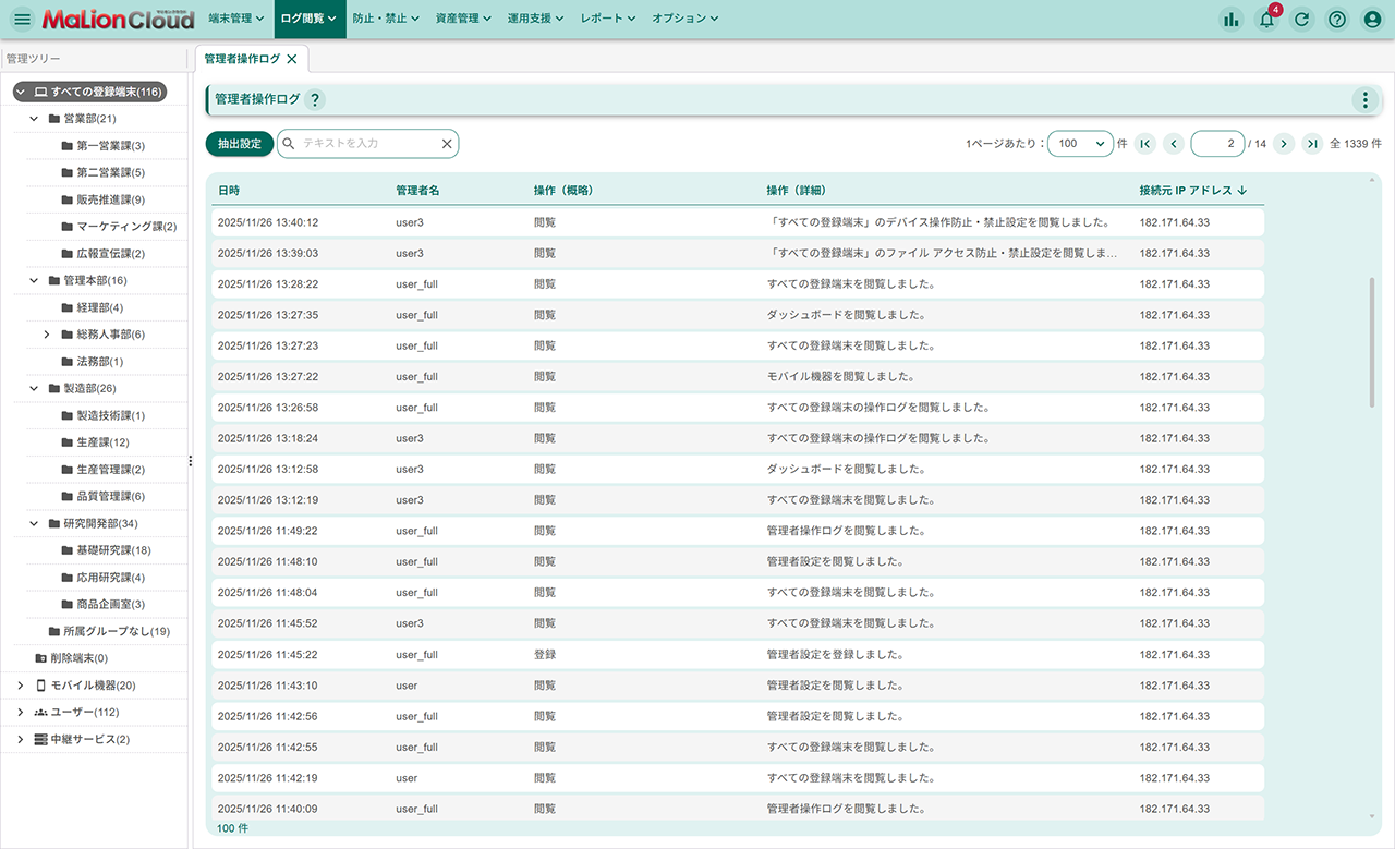管理者操作ログ