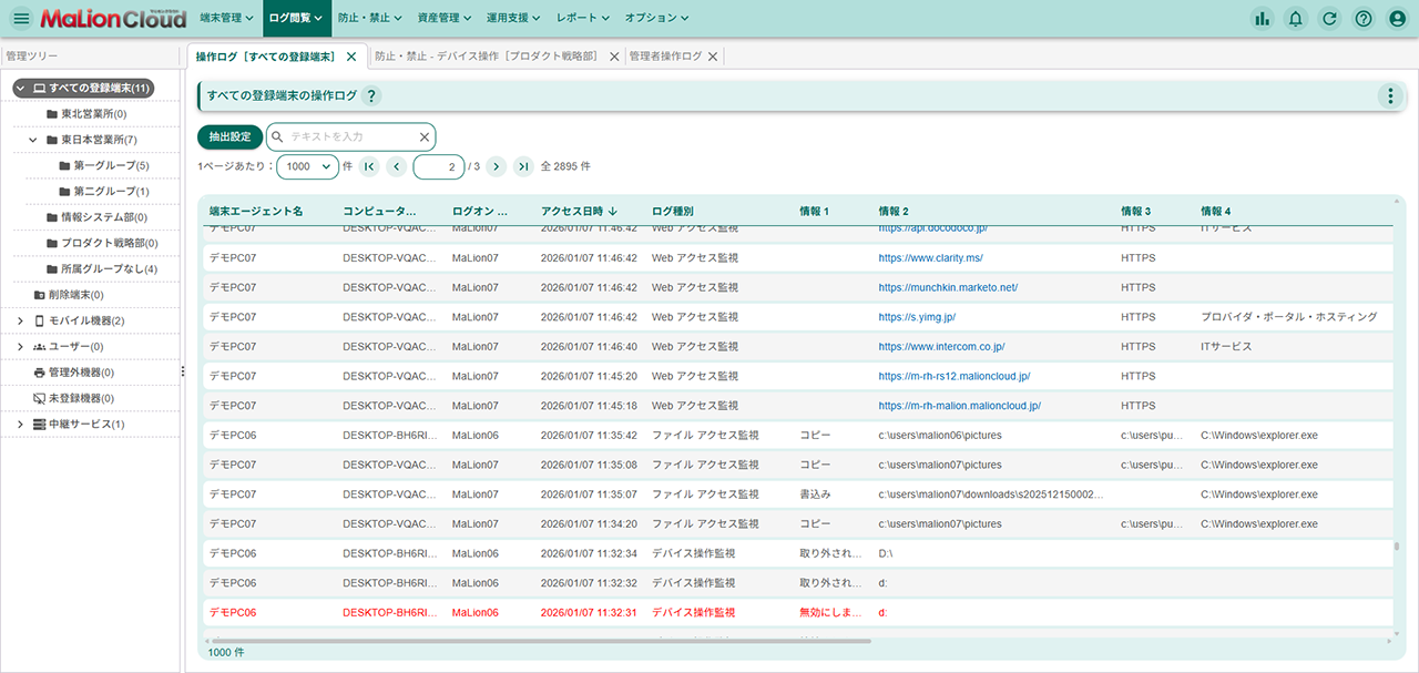 各PCにセキュリティポリシーを設定し、そのポリシーに基づいてクライアントPCの操作を制御できます。これにより、不正操作や情報持ち出しのリスクを未然に防ぎ、組織全体のセキュリティ統制を強化します。