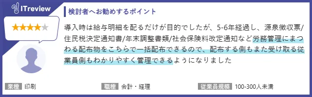 口コミサイト「ITreview」にて実際に導入したお客様からいただいた評価
